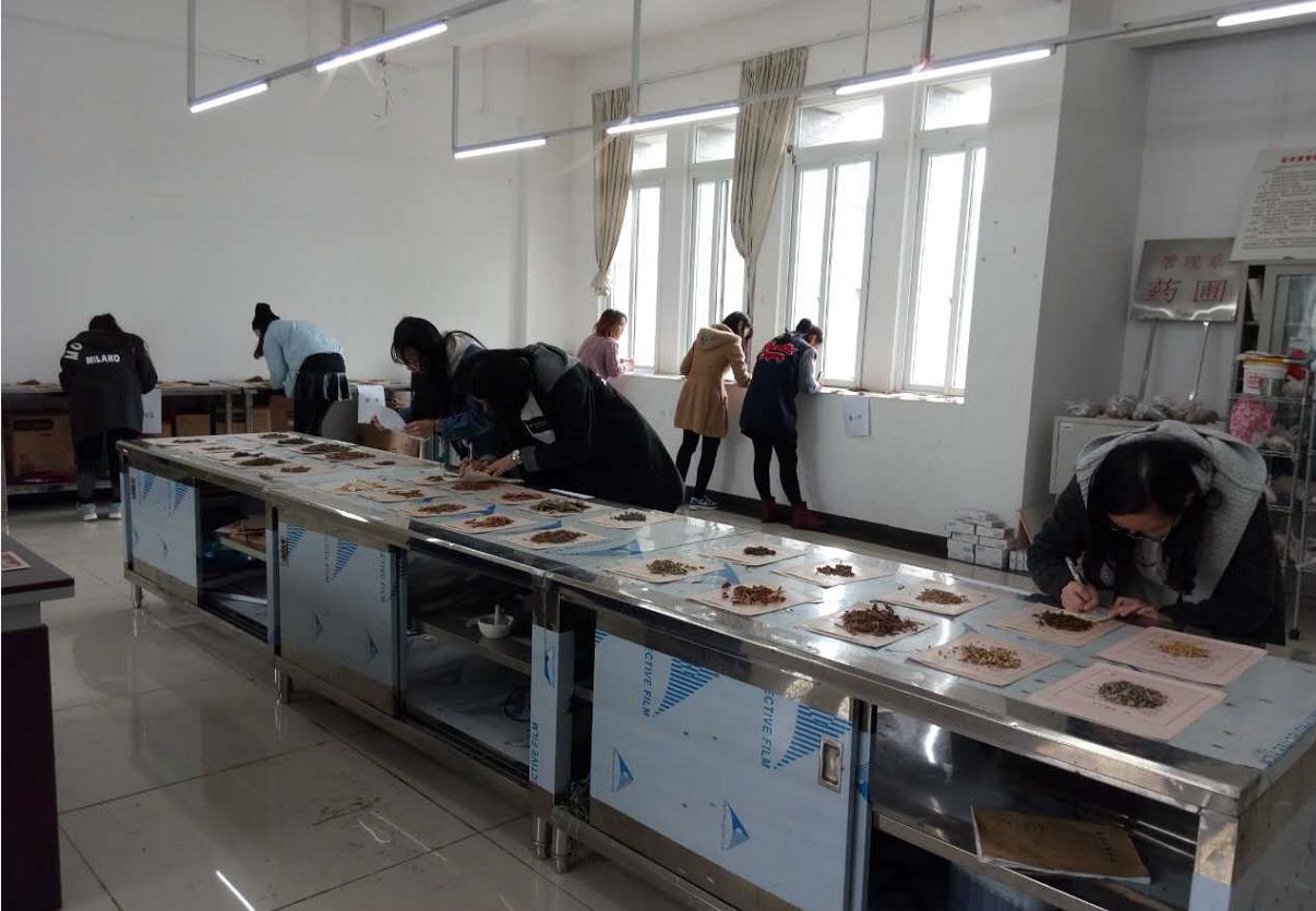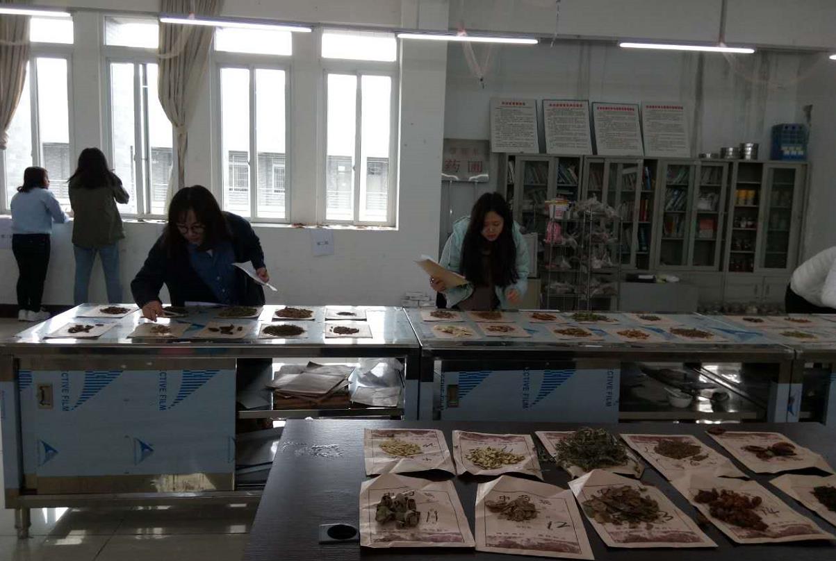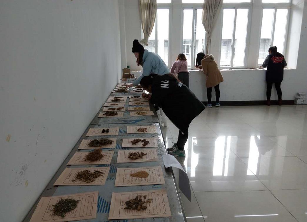 2016年12月27日,第十八周的星期二,15级药品经营与管理专业的同学进行了中药材辨认实践考试。