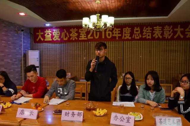 店长发言结束后,运营团队办公室、财务部、产品部、运营部、宣传部、茶道艺术团各部门的部长分别就今年的工作情况进行了总结发言。