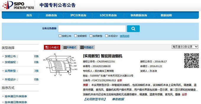 “智能排油烟机”针对目前市场上的抽油烟机控制模块单一,功能单一等问题,提供了自动化控制和功能多样等功能。该专利的获得在我校专利成果的获得上具有里程碑的意义,热烈祝贺!