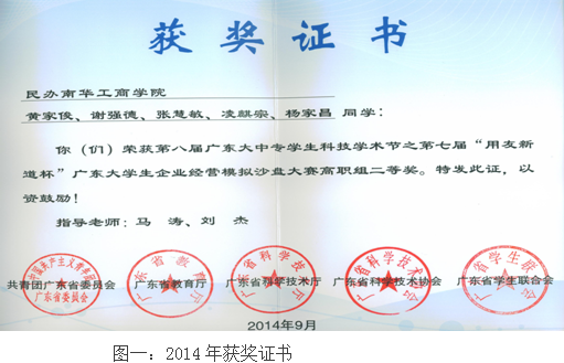 2014年参赛成员是12工商企业管理专业的谢强德、黄家俊、凌麒宗、、张慧敏、杨家昌。