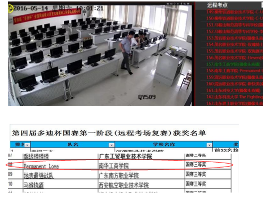 本届远程考试共有141支队伍参赛,包含理论考试与技能考试,在试题难度上有很大的提升,全程摄像头监控,并在各参赛队电脑桌面监控,大赛官网直播显示各赛场时时考试动态,由组委会监考组及全体网友在线监考,经过公开直播监考,评审专家的鉴定,我院14软件班龚兆镇、李董能、郑光宏三位同学,在此次远程考场复赛中,再创佳绩!