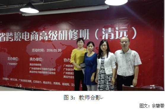 2016年5月20日广东省跨境电商高级研修班在清远金创电商服务中心举行,信商学院组织电子商务的专业教师参加此次培训,参加此次培训的还有清远商务局领导、广东省电子商务协会的领导、清远职业技术学院、清远技师学院以及清远各种外贸公司。