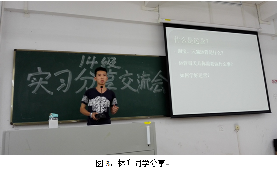 2016年5月16日晚上8点半,信商学院电子商务专业14级全体学生、信商学院院长李新、常务副院长肖伟、凌红书记和电子商务专业的相关老师齐聚实验楼316,准备聆听去深圳爱美赞电子商务有限公司实习归来的八位学生分享他们的实习心得。