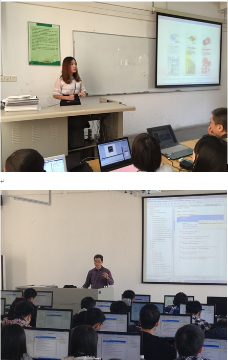 两场公开课分别由杨家成和冯圣媖两位老师主讲。杨家成老师的《移动开发基础》公开课上,运用由浅入深,循序渐进的教学方法,授课内容结构严谨充实,思路清晰,课堂中的案例分析,与学生的互动,都取得了良好的教学效果。冯圣媖老师的《企业形象设计与制作》公开课以VI设计案例赏析为内容,讲解细致,项目导向性强,案例通俗易懂,师生互动氛围好,在课堂上获得了良好的反馈。