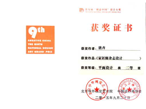 作为中国创意设计界高规格的设计奖项,“创意中国”设计大奖已成功举办八届,每届获奖作品都代表着当前中国设计研究与创作的年度水准。本届大赛共计收到来自中国内地及港澳台地区的6098件参赛作品(有效稿件),大赛内容涵盖了平面设计、工业设计、环境艺术设计、摄影、综合等五个类别。其注重设计与艺术的结合,坚持交叉与融合的标准,旨在展现中国创意设计领域的最新成果,推进我国设计人才的知名化、国际化进程。