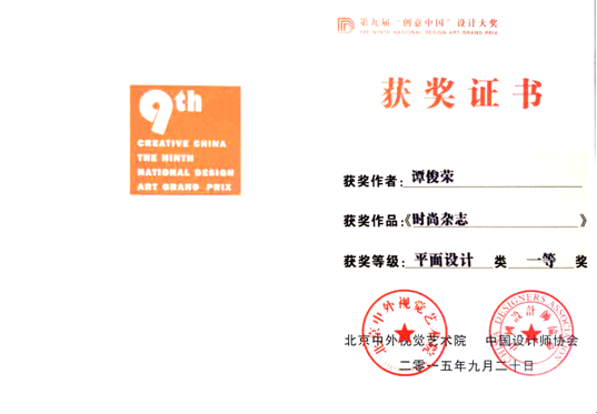 日前,第九届“创意中国”设计大奖赛在中国创意同盟及各大专业媒体公布获奖名单,信商学院2013级多媒体技术专业学生谭俊容同学获得平面设计类一等奖,唐卉、叶钦清同学获得平面设计类二等奖,黄家俊同学获得平面设计类三等奖。同时,信息工程与商务管理学院荣获“中国设计教育成果奖”,冯圣媖老师被评为优秀指导教师。