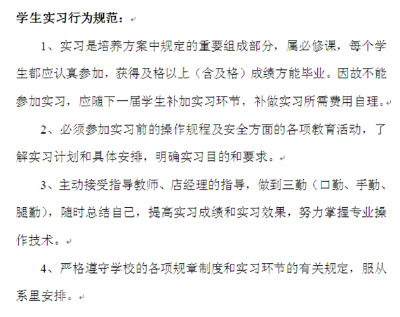众所周知,将学生培养成适应企业需要的高素质技能人才,是学院办学的根本目的,为此我们制定了严谨的人才培养方案,按照“认知实习—课程实训—顶岗实习—毕业实习”安排学生实践教学环节。在店经理和我院专业老师的指导和管理下,学生全程参与组织结构建立、采购、销售、收银、仓库管理等超市运营过程。认知实习的内容与要求如下: