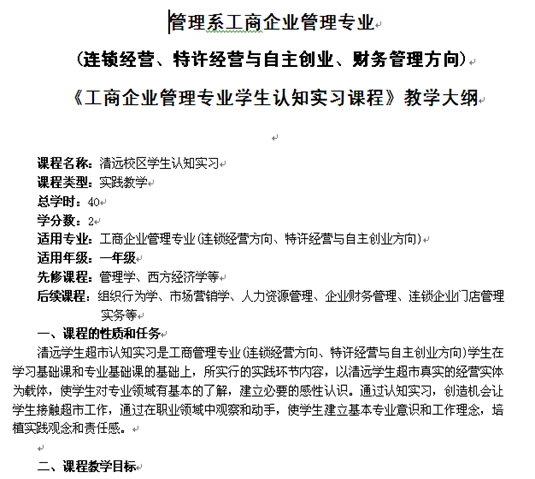 为加强对实习的管理,学院与清远学生超市合作成立了清远学生超市认知实习指导小组;制订认知实习教学大纲、教学计划并组织实施;制订实习各项管理规章制度,建立认知实习质量监督管理机制,对认知实习的全过程进行监督评价。