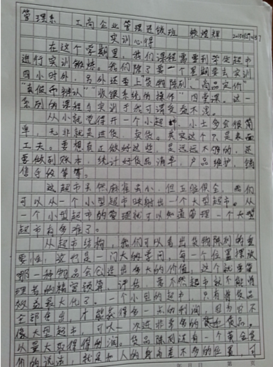 自超市建立以来,我院08级、09级、10级、11级、12级、13级工商企业管理专业学生均参加了认知实习。实践中的感悟为接下来市场营销,物流管理,门店运营、商务谈判与推销技巧等课程的学习打下了基础,并有利于树立劳动观点、集体观点和创业精神,提高专业基本素质。
