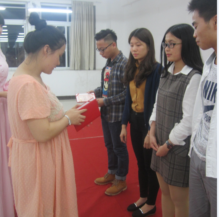 接下来是表彰环节,由主持人宣读”优秀先进班级”、“三好学生标兵”、“三好学生”以及“优秀学生干部”名单。随后,出席的辅导员们分别为表彰集体与个人颁发了获奖证书与奖品。无论是集体还是个人,他们都是信商学院的骄傲,他们用各方面的成绩证明了他们的实力。我们相信今后的他们也一定会再接再厉,再获佳绩。