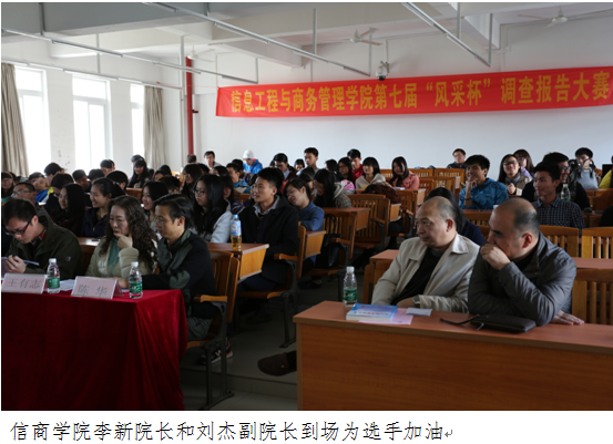 2014年12月24日,大赛决赛当天,清远校区教学楼319课室座无虚席。中午13:45,各评委老师、参赛队伍和观摩团皆陆续到达现场。此次比赛的评委由信息工程与商务管理学院凌红副书记、林晓明老师、胡元利老师、陈华老师、梁晓允老师、何军老师担任。信商学院李新院长,刘杰副院长也到场为比赛选手加油鼓劲。本次决赛共有10支队伍进行角逐,他们经历了重重选拔,参赛作品历经多道加工修正,终于站在了这个舞台,在8分钟的时间内把市场调查报告用PPT的形式在场进行展示汇报,对老师提出的问题进行解答,再由评委老师对其总体表现进行评分决定胜负。经过一轮无形的较量,比赛结果为:一等奖由商务1班的“Top men”获得;二等奖分别由营养师班的“如来佛祖”和传媒班的“传媒班小组”获得;三等奖分别由医药营销班的“小灵通”、商务1班“You & Me”和行政班的“King Back”获得;优秀奖分别由房车班的 “还没想好小组”、特许1班的“Interrational Team”、连锁班的“明日之星小组”、特许二班的“向日葵小组”队获得。比赛结束后,由吴丽蓉老师进行总结,她表示今年的参赛团队素质很高,准备充分,极具专业精神,希望大家能再接再励,把这一种比赛精神发扬至各科的学习中去,收获美满。
