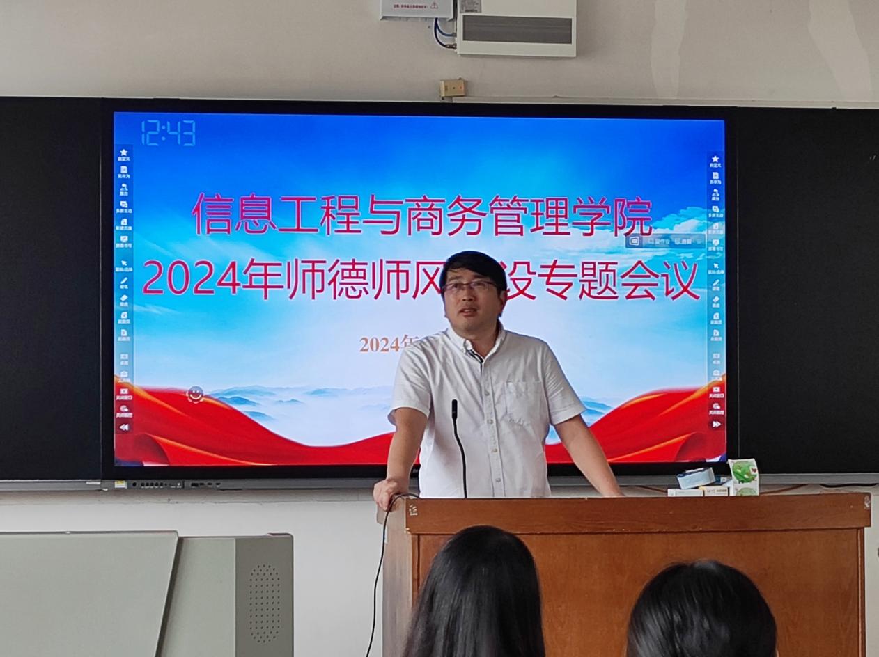 8月31日,信息工程与商务管理学院(以下简称“信商学院”)召开2024年师德师风建设专题会,学院全体教职工参加会议。