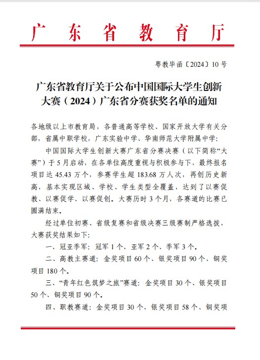 近日,信息工程与商务管理学院(以下简称“信商学院”)3支队伍在中国国际大学生创新大赛(2024)广东省分赛中荣获三等奖3项。