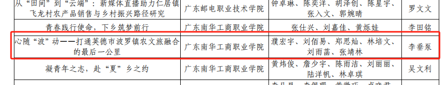 图3 广东省多彩乡村社会实践活动获奖名单