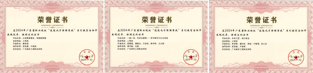 图4 2024年广东省职业院校“技能成才强国有我”系列教育活动获奖证书