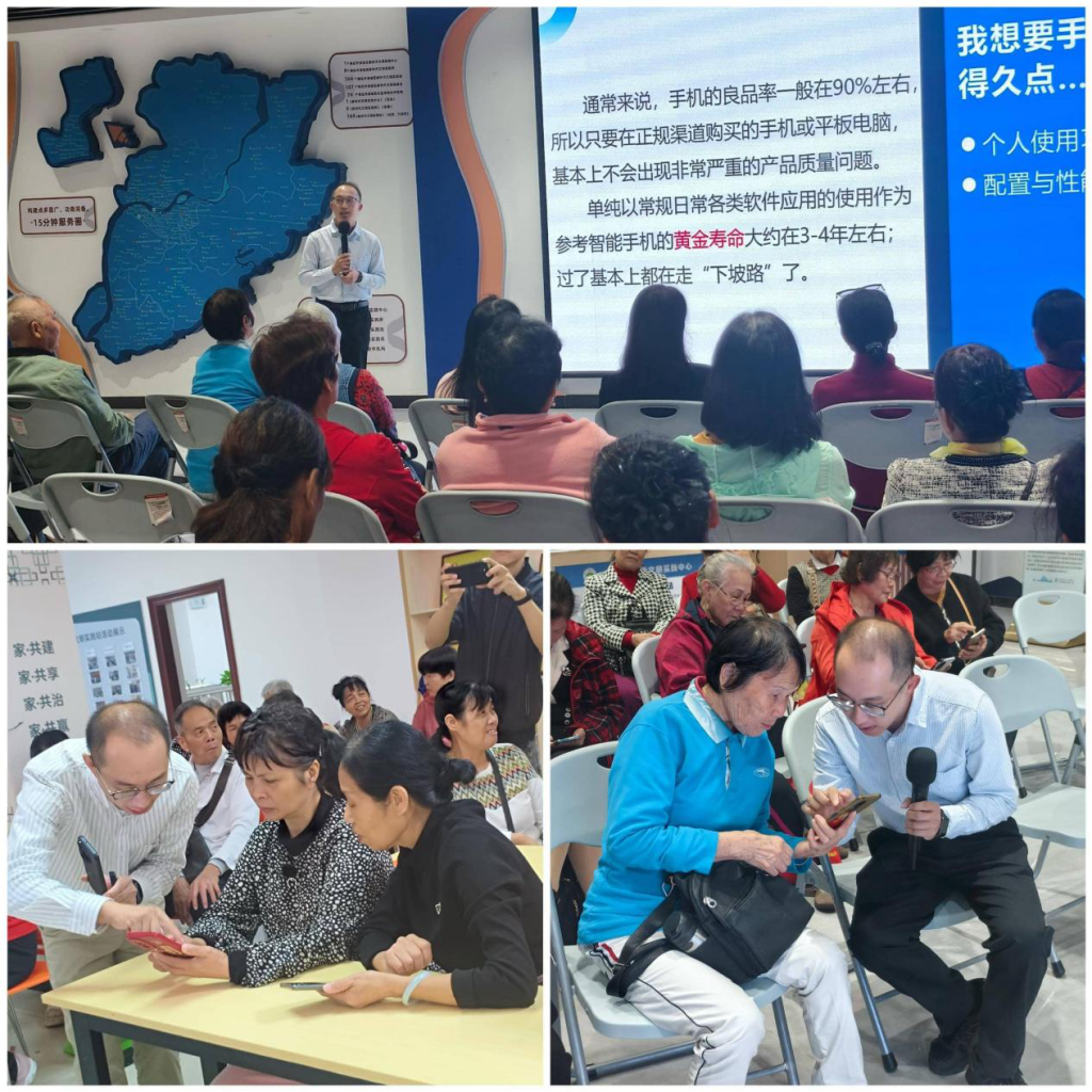 课程围绕手机基础设置、常用APP使用、微信使用技巧、网上便捷生活服务、手机安全优化等内容展开。教师团队采用 “理论 + 实操 + 一对一指导” 模式,简化专业术语,细致拆解操作步骤,课堂氛围热烈。两地学员学习热情高,不少中老年学员反馈,此前因不熟手机操作在出行、就医等方面遇阻,课程解决了生活 “小难题”。