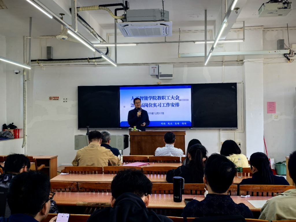 12月17日,人工智能学院召开教职工大会暨2026届毕业生实习就业工作动员会。会议重点围绕2026届毕业实习安排、就业创业工作推进、校园安全稳定及相关制度学习等议题,旨在统筹推进毕业阶段各项任务,为学生顺利走向职场夯实基础。