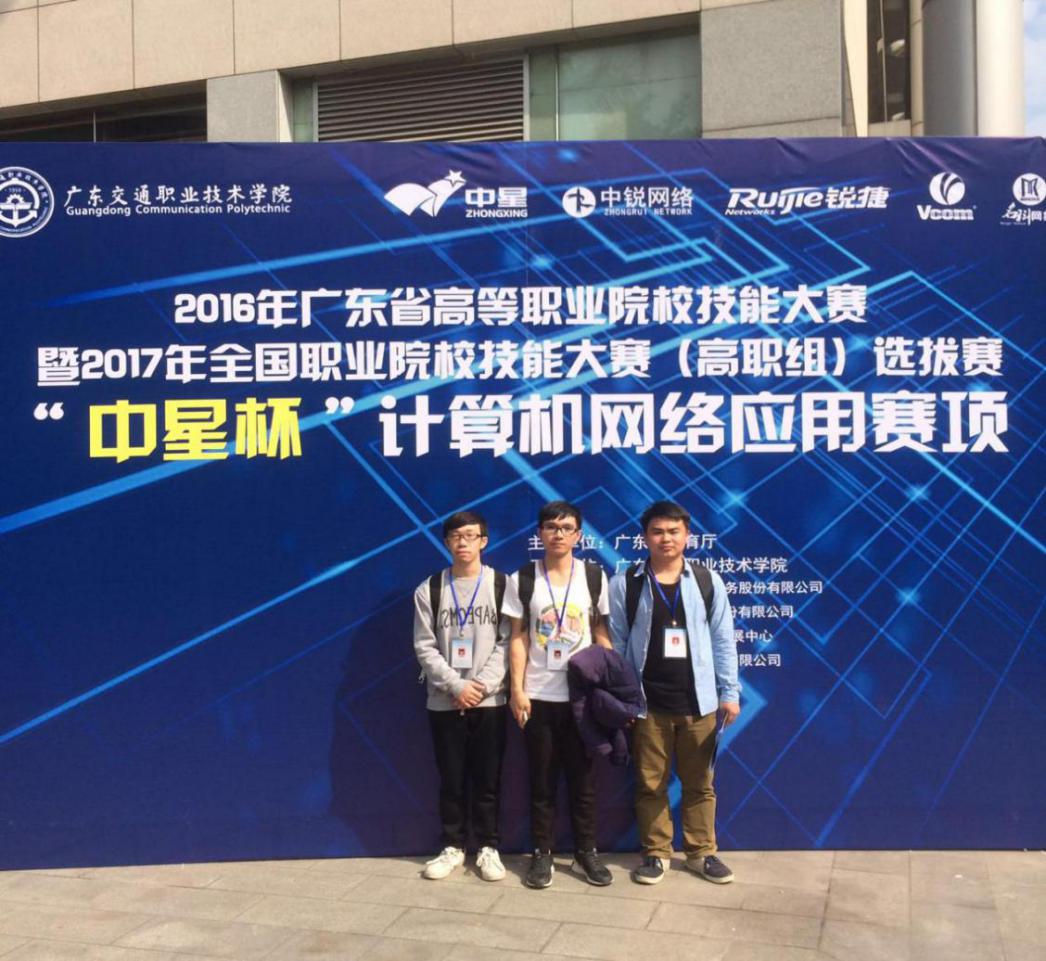12月4日-5日,由广东省教育厅主办的2016年广东高职院校技能大赛暨全国职业院校技能大赛选拔赛“计算机网络应用”赛项在广东交通职业技术学院举行。经过4个小时激烈比赛,我院14级计算机网络技术专业钟俊权、马展裕、利兆锦组建的代表队获得二等奖,指导老师是信商学院网络技术专业的肖伟、吴国立老师。