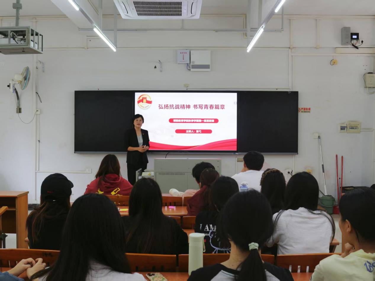 10月29日,博雅教育学院副院长张弋以“弘扬抗战精神,书写青春篇章”为主题,为23行政1班全体同学讲授“思政第一课”。图1 “思政第一课”授课现场副院长张弋通过一系列数据和生动的故事,带领学生们回顾了那段战火纷飞的年代:从1931年九一八事变导致的国土分裂,直至1945年日本签署投降书时的民族欢腾;从南京大屠杀中三十万同胞的血泪记忆,到平型关大捷、百团大战带来的鼓舞人心的胜利。这些内容使学生们深刻理解到,抗日战...