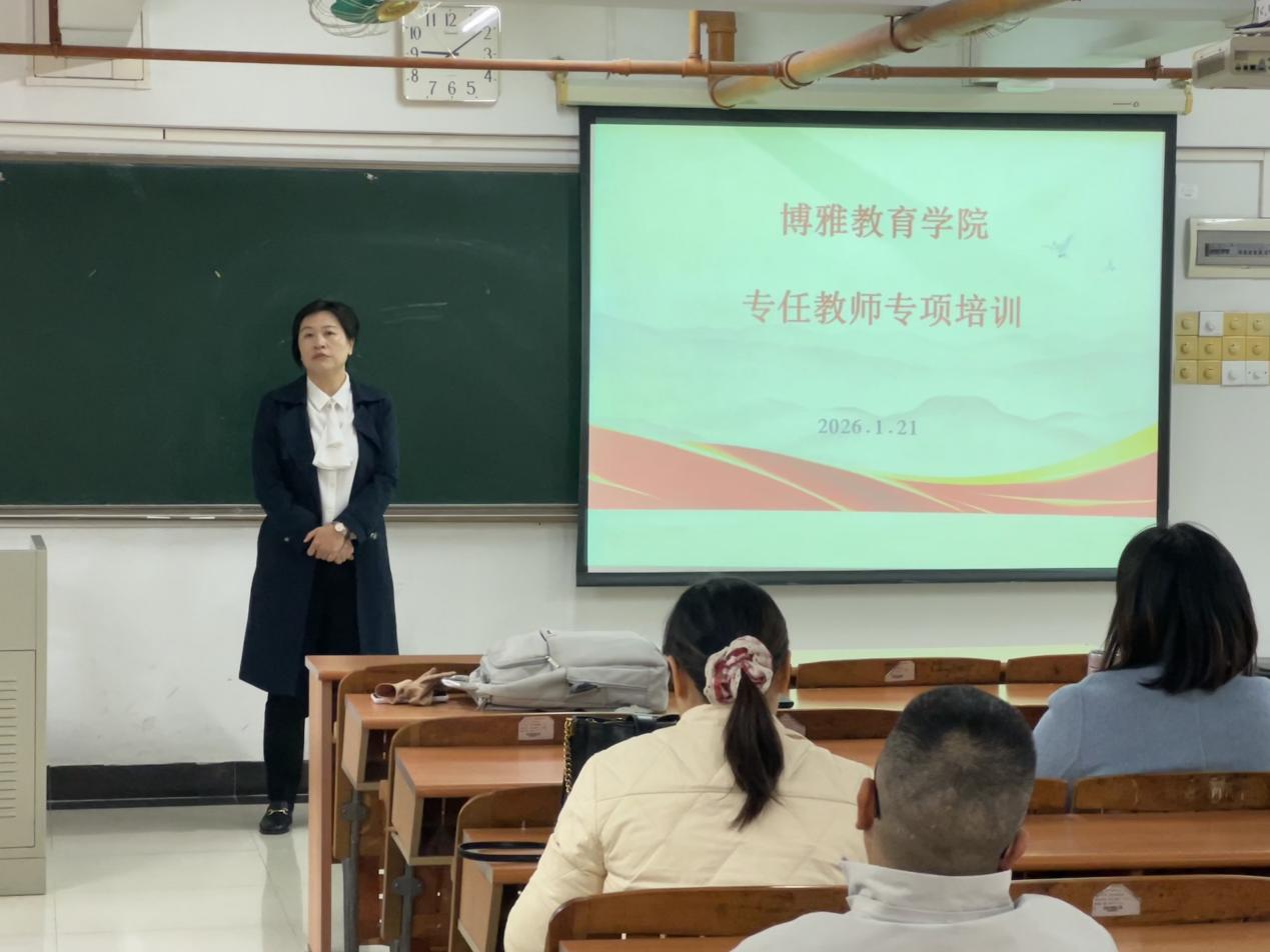 1月21日,博雅教育学院在天河校区综合楼502开展专任教师专项培训。培训旨在落实学校2026年重点工作规划,筑牢高素质技术技能人才培养的师资根基,拓宽教师教学视野、提升专业素养,凝聚教研共识,为学校打造“工会加职教特色”目标凝聚育人合力。学院全体专任教师参与此次培训。图1 张弋副院长讲话培训当天内容充实、安排紧凑。上午,学院副院长张弋阐述了培训的重要意义,强调教师专业能力提升对学校人才培养质量和长远发展的...