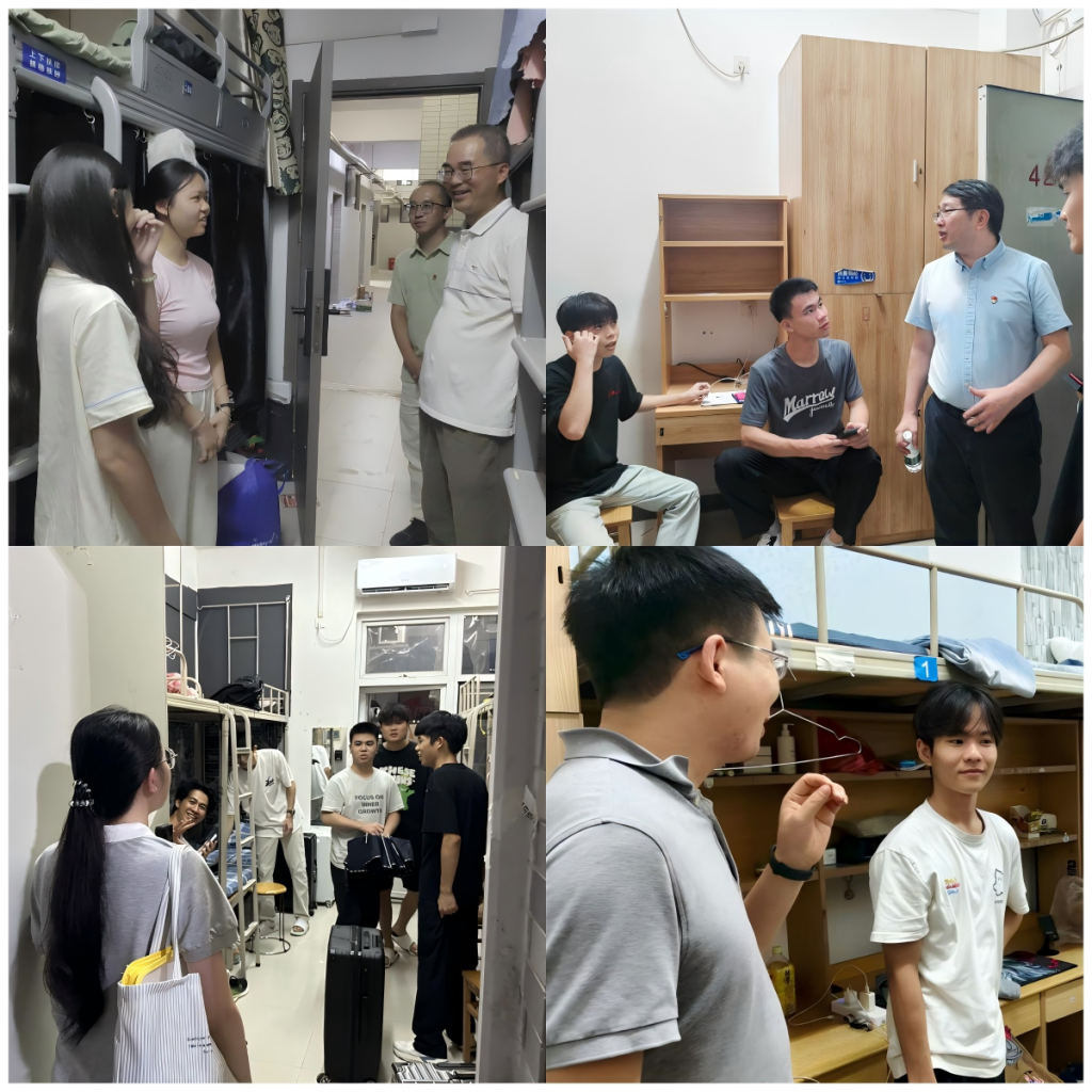 9月4日晚,人工智能学院开展2025级新生宿舍走访活动。人工智能学院副院长杨家成、党总支书记郑海清带领全体辅导员、2025级班主任及班导进新生宿舍,深入了解新生入住和适应情况,以关怀护航新生尽快融入校园生活。走访中,老师们与新生亲切交流,细致询问同学们是否适应环境和生活中遇到的困难等,耐心倾听同学们的疑问并逐一给予回应,鼓励新生积极融入集体、多锻炼、勤实践;特别提醒同学们注意宿舍安全,遵守防火、防盗和用...