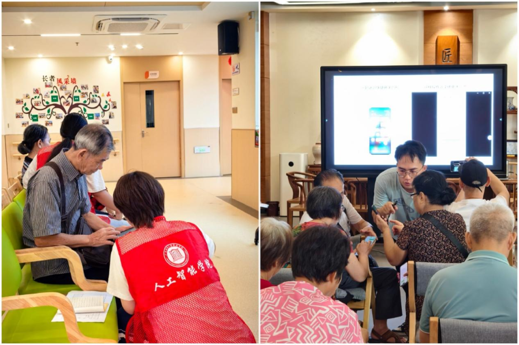 9月14日,人工智能学院“智享生活”公益课堂走进社区,开展“智享生活”智能手机应用培训活动,助力老年人拥抱智能生活。公益课堂活动现场(左:广州天河,右:清远清城)本次活动分别在广州天河、清远清城的社区同步开展,聚焦老年人在日常智能应用中遇到的常见难题,围绕手机基本操作、微信使用、手机支付、公交出行、养老资格认证等高频生活场景展开培训,并结合典型事例普及宣传反诈防骗知识,增强老年人网络风险防范意识。...