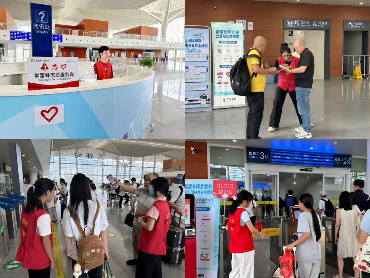 9月29日至10月8日,我校团委与广州地铁集团广东城际运营公司(下称“广东城际”)密切合作,组织400余名志愿者前往城际花都站、清城站、飞霞站开展客流引导和旅客服务保障工作,以实际行动服务“轨道上的大湾区”,传递南华正能量,成为“双节”期间最亮丽的风景。我校志愿者风采图一“您好,有什么需要帮忙的吗?”“花都方向请往这边。”10月1日晚,城际花都站迎来客流高峰,我校50余名志愿者手持指引牌疏导客流,协助做好问...