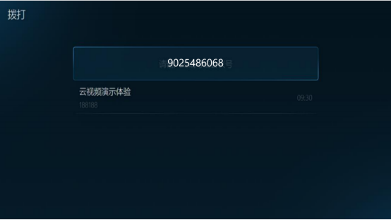 第三步:开机后用遥控器方向键点击 “拨打”选项,按遥控器的数字键输入会议号:9025486068即可进入会议。如图所示: