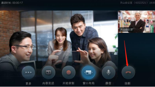 使用遥控器对准机柜里的小鱼主机,点击遥控器“OK”,“方向键”选择挂断,如图所示: