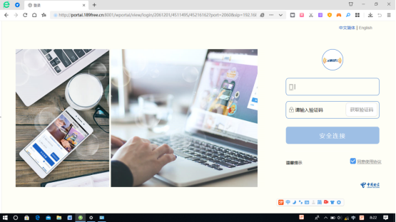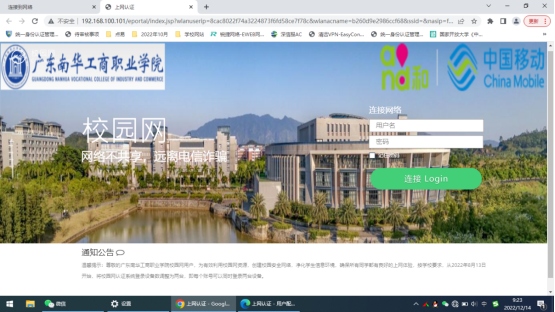 上图是专家楼、国匠楼NHIC_ZJL无线认证界面(学校已购买清远电信增值服务)