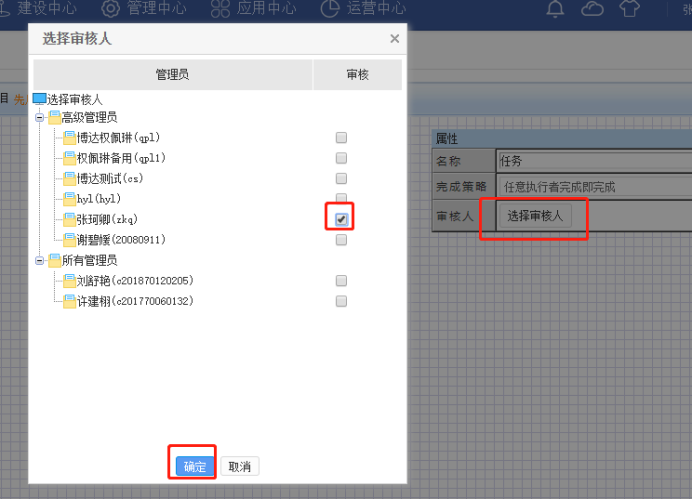 15. 点击“任务”——点击右侧属性栏的“选择审核人”——选人后确定
