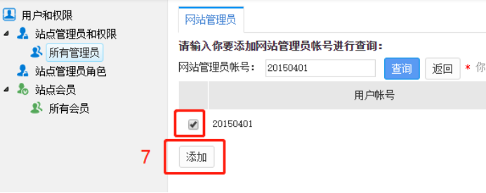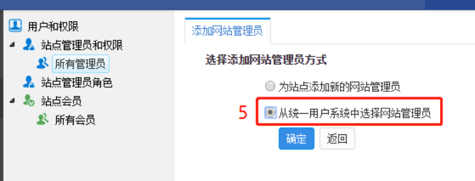 5. “从统一用户系统中选择网站管理员”