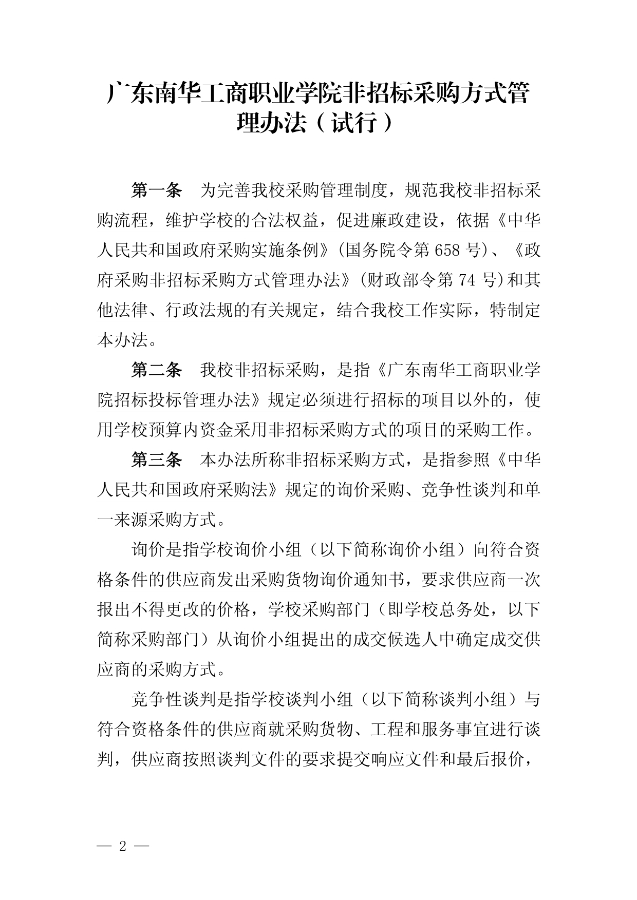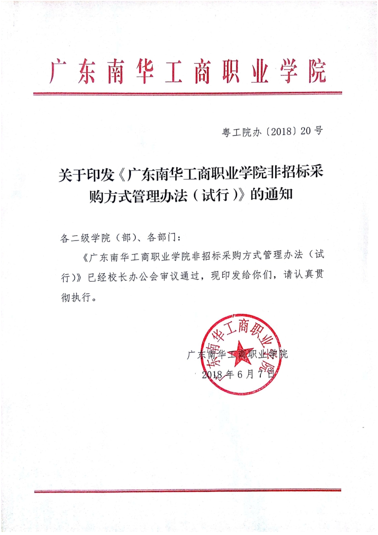 《广东南华工商职业学院非招标采购方式管理办法》(试行)