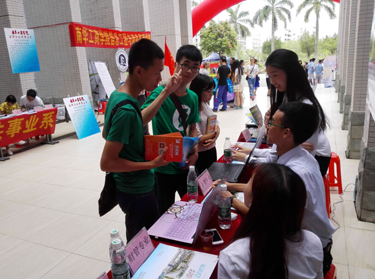 6月28日清远市2015年普通高校招生宣传咨询会在我院清远校区顺利举行。为参加本次咨询会,我系响应学院号召前期做了精心的准备,重点做好专业介绍和亮点介绍,按专业提供咨询服务。参加本次咨询会的工作人员有唐晓林主任、黄志伟老师、黄品老师及来自我系七个专业的同学,参加咨询会的所有同学均熟悉本专业的专业特色和考级考证相关规定。在咨询现场工作人员耐心、礼貌、全面地回答了考生及家长提出的问题。