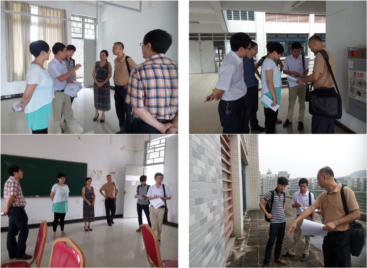双方就实训室的前厅、客房、中餐厅、西餐厅、咖啡厅等功能区域进行实地测量,并根据现场情况改进和优化原有设计。针对排气、排水、布线、桌椅摆放以及地板、大门、天花等建裝的颜色、材质进行了深入的对比研究。胡家夏主任对设计施工方一再强调,所用的材料和装置一定要符合规范,保证师生在使用过程的安全,能长期使用;实训室是用于教学,不追求商业化的打造,要符合校园文化气息。