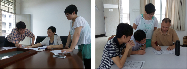 为了又好又快地建设我院校内第一个省级实训基地,5月27日,旅游管理系胡家夏主任、教务处郑海清副处长、酒店管理专业教研室主任陈丽芳老师、烹饪工艺与营养教研室主任张树清老师、辅导员黄隽老师与基地建设中标公司的设计师们就旅游管理系在清远校区打造的酒店实训室、咖啡厅实训室进行实地勘查与设计研讨。