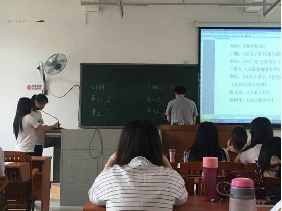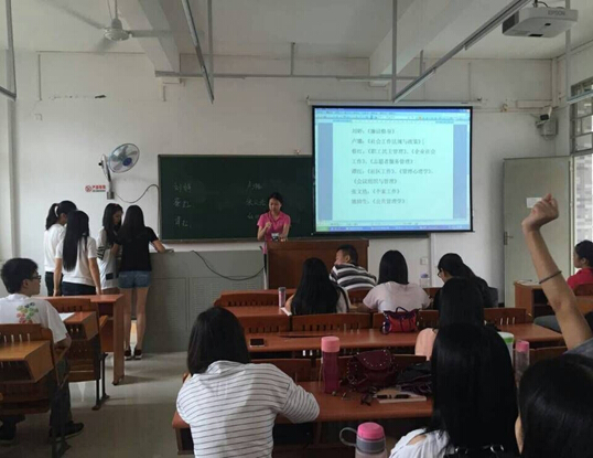 2015年5月21日上午十点整,法律与公共事业系2013级社会工作班根据校学生会关于举办我院首届“我最喜爱的老师”评选活动的通知,召开主题班会,进行班级推选。13级社会工作班全体同学参与评选活动,我系辅导员王韵老师参加了此次主题班会。