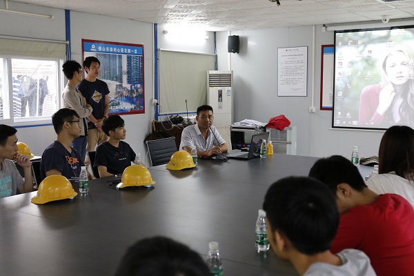 会议结束后按照预定的实训计划展开实训,全班64人分为6个小组,组长分别为南华工商学院监理教研室主任杨涛老师,佛山禅建监理有限公司专业监理工程师陈伟彬、钟毅、岑基中,广东重工建设监理有限公司专业监理工程师黎凯艺、郑霸仔、李思玉。专业监理工程师郑霸仔负责监理专业资料的收集、整理、编码、立卷及归档的讲解。杨涛老师和另外五位专业监理工程师主要负责施工现场的参观及讲解工作,同时负责好安全工作,处理可能发生的紧急事件。6个小组分开并交叉进行实训。
