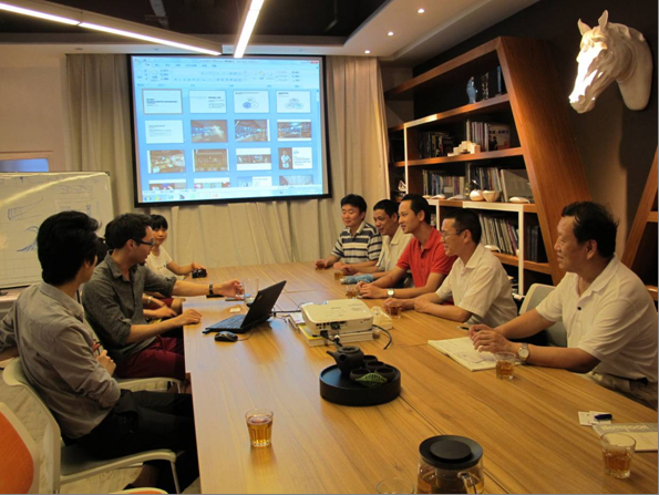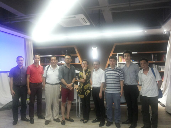 由于之前花的时间超过预计,早上的行程很遗憾地错过了05级环艺专业系友李超同学所在的派尚设计公司,但在他的引见下,一众老师曲折来到了福田区另一家公司,深圳首位环境艺术设计有限公司。该公司黄姓总经理(兼设计总监)和方姓副总经理在设计展示厅热情地接待了我们。黄总经理用PPT介绍了公司的概况,发展历史、设计理念,并花了很长时间以多个案例专门讲解设计理念在实际业务的应用以及设计师理念和专业能力的培养,虽然我们一行老师多数都没有学过艺术设计,但都能听得明白且津津有味。随后学校和公司双方针对人才培养等等各方面也展开了交流和讨论,黄总和方总给了很多有益的启示,例如:要想成为设计师不能局限于专业知识,还要广泛涉猎历史、音乐、美学、电影、各国文化、生活情趣等等;而一个成功设计师的人际交往要跳出设计人士的小圈子,交各行各业的朋友;设计师创造思维的培养在于专业以外的艺术熏陶,学校课程的设置要重视艺术课……,整个交流活动进行至5:00才结束。