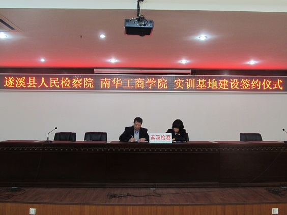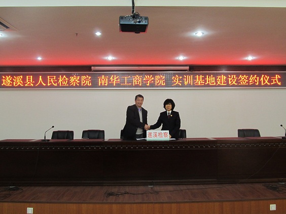 下图: 刘志栋教授于遂溪人民检察院副检察长陈筱娴检察官签订实习基地协议书。
