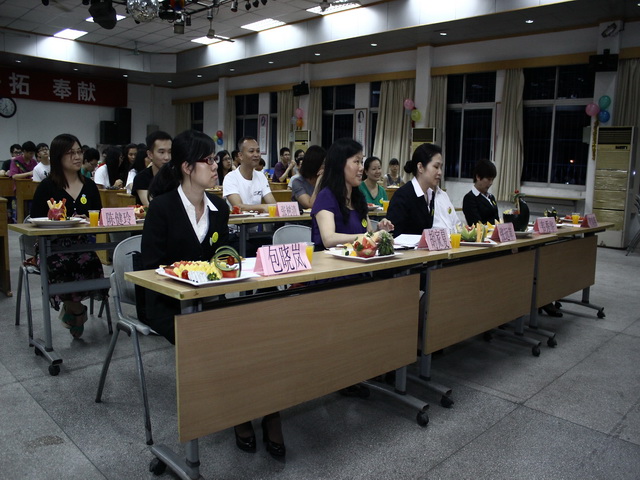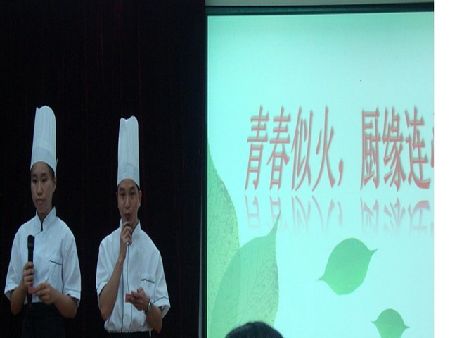 为了丰富同学们的课余生活,增进同学之间的友谊,加强班级之间的交流与联系, 2011、2012级烹饪班于5月16日在天河校区三号楼4楼举办了主题为“青春似火,厨缘连心”的联谊晚会。本次晚会出席的嘉宾有:学校教务处处长韦秀华、旅游管理系主任胡家夏、系副主任谭金凤及张树清、徐莎莎、熊汝鑫、陈健玲老师和流花宾馆人力资源部经理张远苹、助理贺瑞燕、人事专员鲍晓岚。
