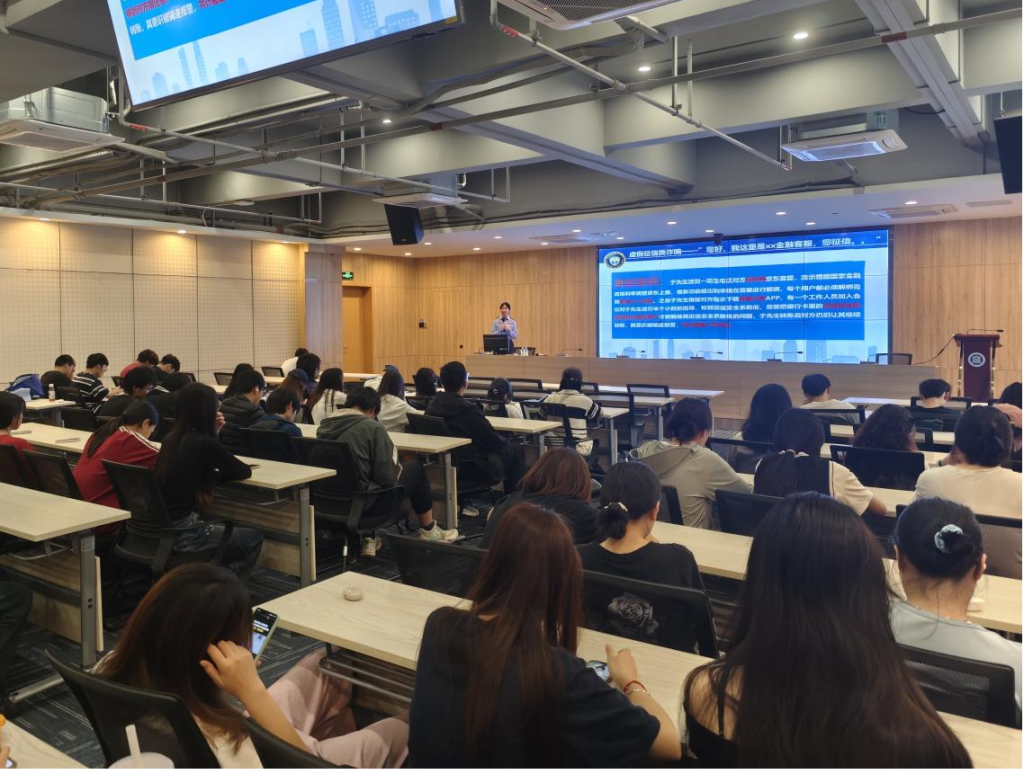 清城区公安局反诈宣传民警在图书馆报告厅为师生带来生动的反诈讲座,用通俗易懂语言结合真实案例,解读电信网络诈骗惯用手法、形式、危害和防范技巧等,提醒师生辨别诈骗、维护自身权益。在学生宿舍,支部党员作为“反诈先锋队”通过发放宣传单为同学们讲解反诈知识等形式进行反诈宣传,使师生进一步增强自我保护意识同时激发更多同学参与防诈反诈行动。