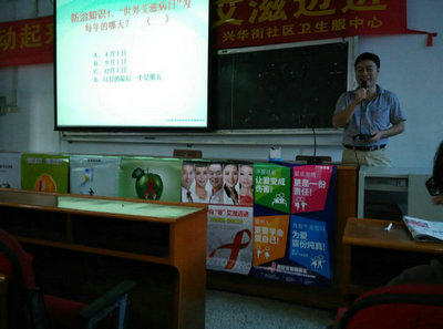 薛医生向参与讲座的师生介绍了艾滋病在中国和全世界的分布情况、发展趋势,以及艾滋病的发病原理和传播途径、预防措施以及大学生在预防艾滋病工作中的重要作用。薛医生在授课中安插有奖知识问答及播放艾滋病歌舞剧碟片环节,使讲座变得生动有趣,提高了学生听课的积极性。同时,他还运用生动的事例,有力的数据及令人触目惊心的图片,让师生们更深刻地了解了艾滋病的危害。