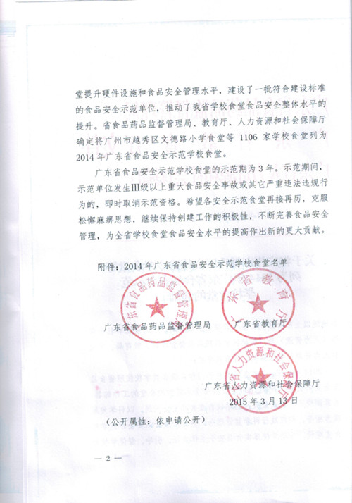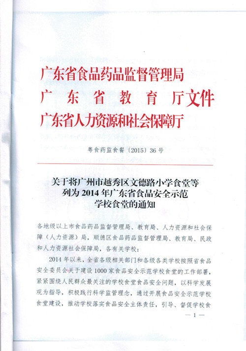 近日,广东省食品药品监督管理局、广东省教育厅、广东省人力资源和社会保障厅联合发文《关于将广州市越秀区文德路小学食堂等列为2014年广东省食品安全示范学校的通知》,我院清远校区第二食堂榜上有名,被评为广东省食品安全示范学校食堂。