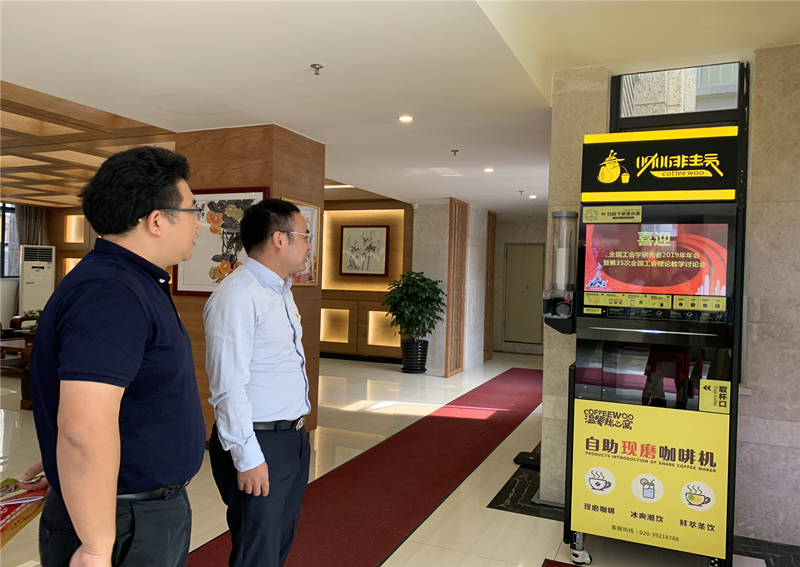 二是以合作方式引进智能咖啡机项目,满足学员和师生多样化需求。自助咖啡机设在一楼大堂,提供咖啡、奶茶、饮料等十几种品种,方便大家足不出校门便可享用美味饮品。