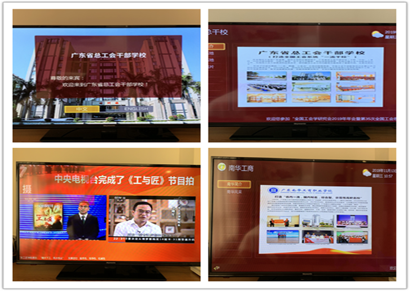一是运用智慧互动电视系统,扩大学校宣传阵地。通过与广东广电网络公司的合作签约,全面升级加速培训楼无线网络,定制电视开机界面,以文字图片视频形式宣传学校相关介绍、媒体新闻,让住在培训楼的工会学员通过电视就可全面了解学校简介和最新动态,进一步提升学校对外宣传形象。