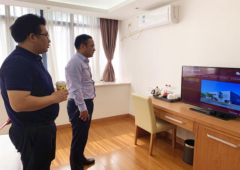 三是应用智能产品,打造智慧客房。总务处携手创新创业学院试点升级部分客房,客人无需手工操作,通过语音即可实现自动开启和关闭灯光、电视、空调、窗帘、播放音乐和新闻,获得全新的智能体验。