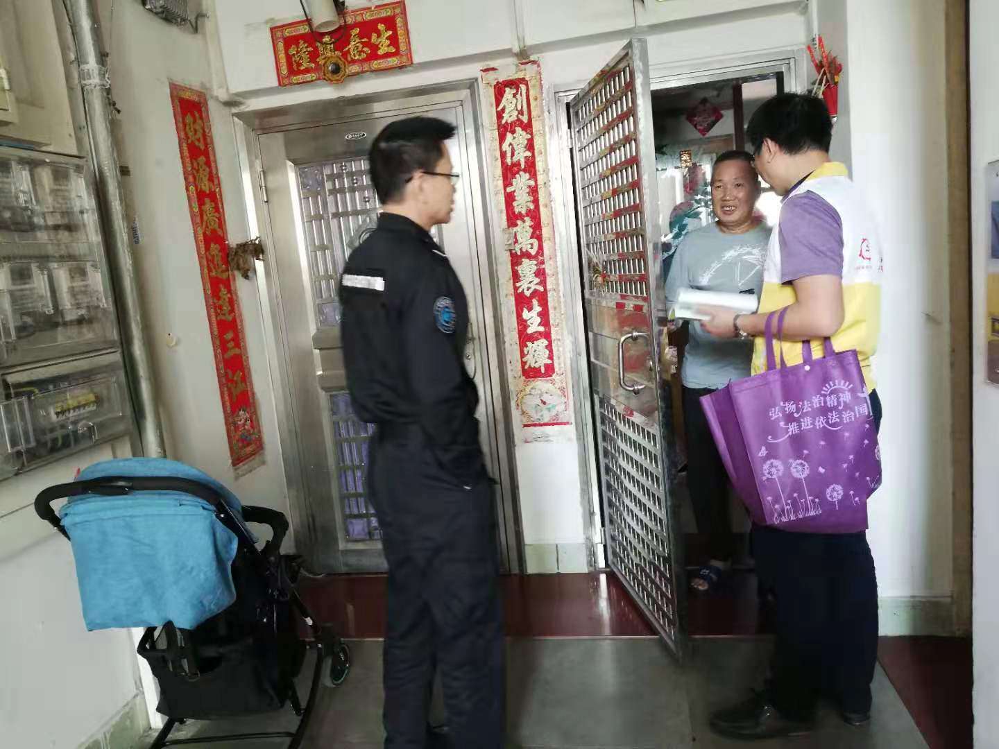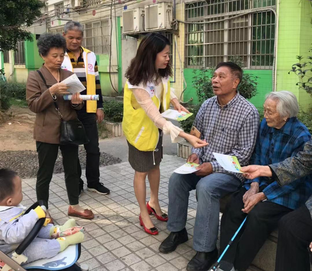 总务处党支部携手兴华街苏庄居委会共同开展此次活动,居委会叶素娥副主任到场参与。在广东省地质装备中心小区,参加人员统一着装并佩戴党徽,共分成三组,两组上楼走进居民家中宣传,一组向过往路人派发《广州市居民家庭生活垃圾分类投放指南》,向居民宣讲什么是垃圾分类、垃圾分类的重要性以及如何正确进行垃圾分类。