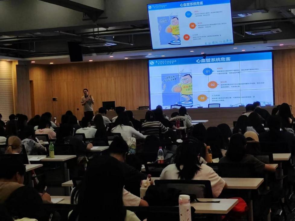 清远市人民医院省职教城门诊部营养科黄启亚主任为师生们上了生动有趣的一课。他以引人入胜的动画图片和幽默风趣的讲解方式引导师生要关注体重和健康,并详细地介绍了肥胖的基本知识、对身心健康的影响,以及对肥胖的预防措施和治疗方法。黄启亚主任提出要接纳自己的身体,建立正确的体重健康观念,避免仅关注体重数值,盲目追求瘦身,应根据个人的身高、体型、健康状况等因素制定合理的目标,以达到健康的体重范围。