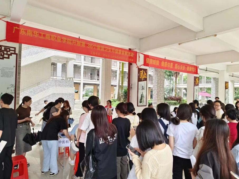 5月10日,总务处与清远市人民医院省职教城门诊部联合开展以“健康城镇,健康体重”为主题的爱国卫生月健康宣教活动,向师生科普健康知识,提高师生的健康意识。